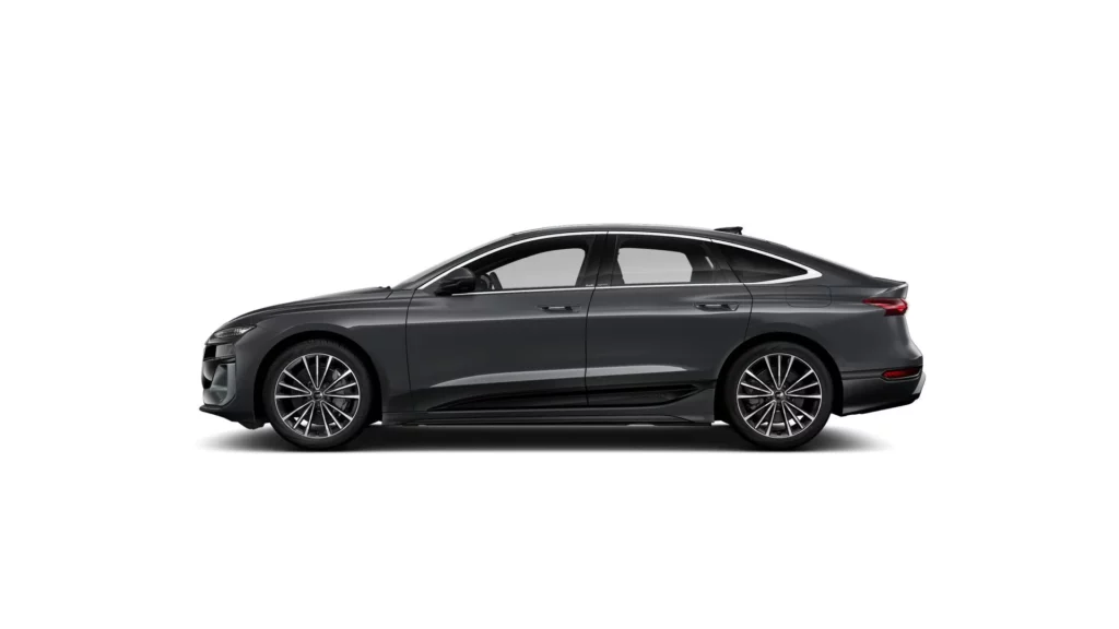 El Audi A6 Sportback e-tron22 encarna el nuevo lenguaje de diseño eléctrico de Audi. Las llantas grandes, los voladizos cortos y la cabina plana bajo el techo curvo del coupé acentúan sus proporciones deportivas.